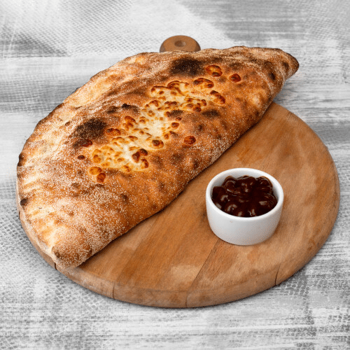 składniki w środku sos pomidorowo-ziołowy, ser, kabanos, oliwki, jalapeno składniki na górze sos pomidorowo-ziołowy, ser, salami pepperoni, pieczarki, cebula, ostry sos sambal